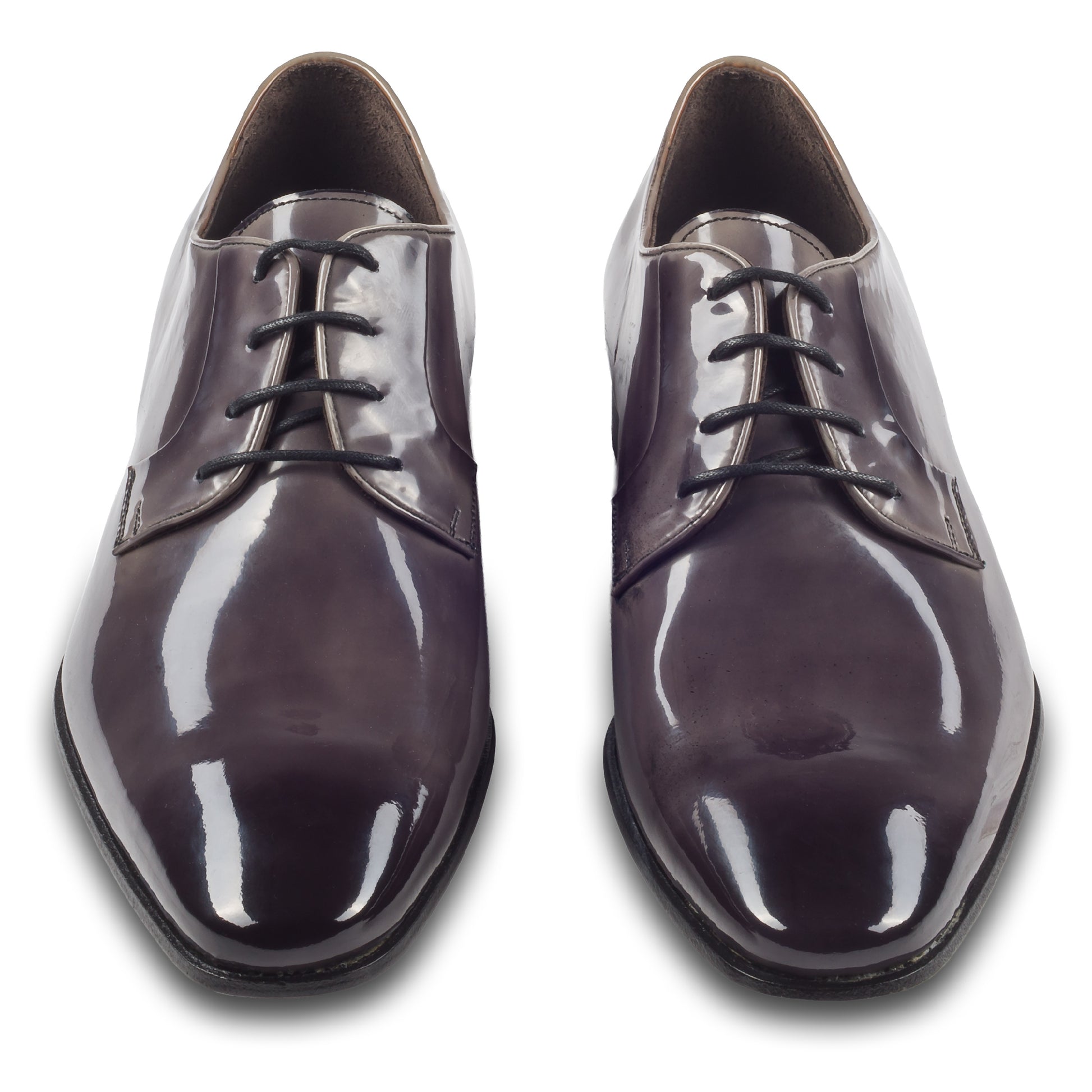 CALPIERRE Herren Lackschuhe grau - Derby-Schnürer Kalbsleder, handgefärbt & durchgenäht